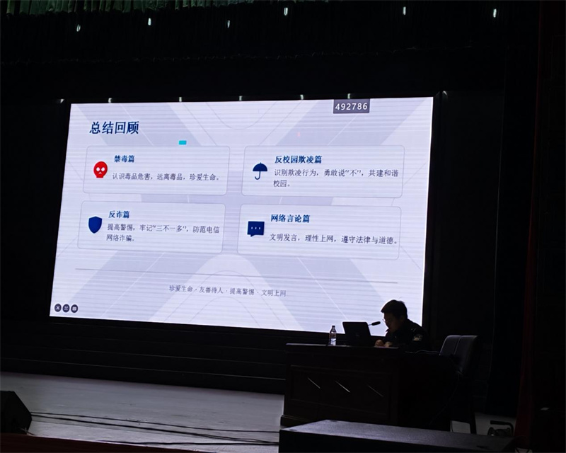 关于网络言论规范,钱警官结合当下网络环境,告诫同学们网络不是法外之地,要树立正确的网络观,规范自身网络言行,不造谣、不信谣、不传谣,不发表侮辱性、攻击性言论,自觉抵制网络暴力,学会保护个人隐私,理性上网、文明上网,守护清朗网络空间。