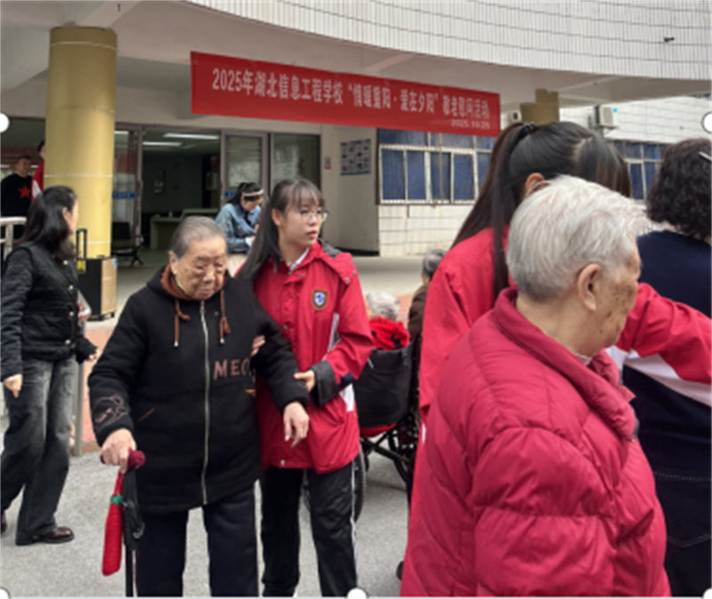 在重阳节来临之际,为弘扬中华民族尊老、敬老、爱老的传统美德,培养学生的社会责任感和志愿服务精神,2025年10月29日上午,湖北信息工程学校团委组织师生代表前往荆门市社会福利院,开展了以“情暖重阳·爱在夕阳”为主题的敬老慰问活动。