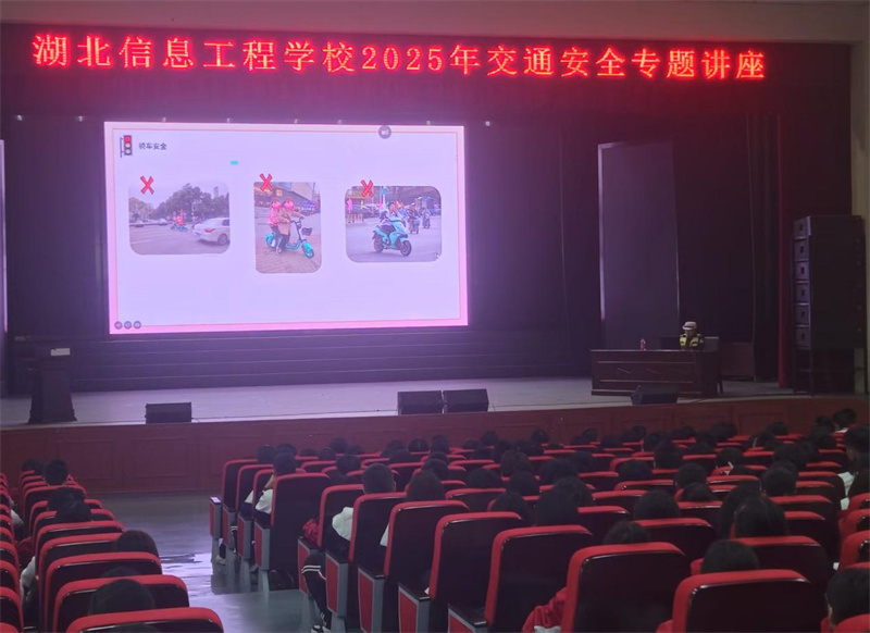 为切实强化学生交通安全意识,有效预防校园周边交通事故发生,2025年11月5日,湖北信息工程学校在大礼堂举办交通安全专题讲座。活动特别邀请荆门市交通警察支队女子中队蒋警官主讲,全校800余名学生齐聚现场,接受生动深刻的交通安全教育。
