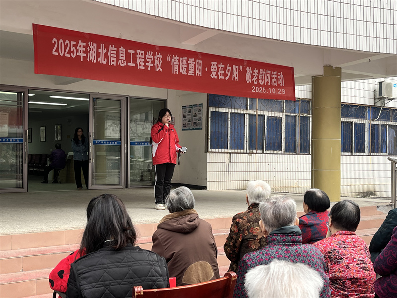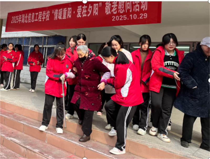 在重阳节来临之际,为弘扬中华民族尊老、敬老、爱老的传统美德,培养学生的社会责任感和志愿服务精神,2025年10月29日上午,湖北信息工程学校团委组织师生代表前往荆门市社会福利院,开展了以“情暖重阳·爱在夕阳”为主题的敬老慰问活动。
