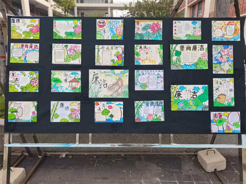 本次活动得到了各班级同学的积极响应。同学们广泛搜集资料,精心设计版面,用手中的画笔,创作出了一幅幅主题鲜明、内容丰富、设计新颖的手抄报作品。这些作品从不同角度阐释了对廉洁的理解,弘扬了诚实守信、勤俭节约、遵纪守法的良好风尚。
