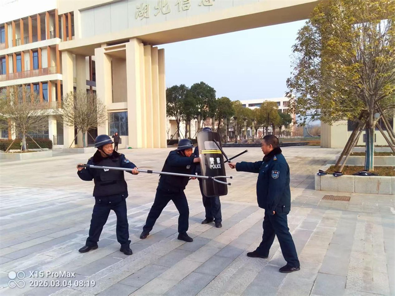 3月3日,湖北信息工程学校安全处组织全体安保人员召开专题工作会议,并开展现场防恐应急演练,全面提升校园安保队伍应急处置能力,筑牢校园安全第一道防线。会上,安全处负责人对近期校园安保工作进行总结部署,明确岗位职责、巡逻要求、门禁管理及应急处置流程,强调安保人员要强化责任意识、安全意识和防范意识,严守校园安全关口。随后,现场开展三人应急单元作战防恐实战演练。演练模拟校园突发外来人员闯入等情景,安保人员按照预案快速响应、规范操作,熟练使用防暴器材,有序完成警戒、拦截、制服、疏散等环节,整个演练过程紧张有序、处置规范,有效检验了安保队伍的协同作战和应急处突能力。