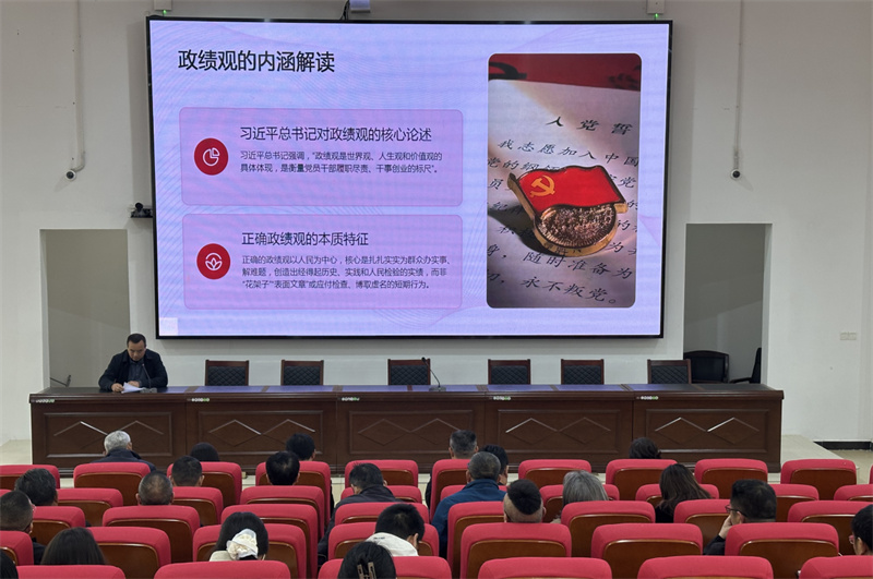 参观结束后,全体人员转场至学校双喜校区学术报告厅,接续开展主题党课学习。学校党委书记王义春以《树立正确政绩观 实干担当建新功》为题讲授专题党课。党课内容紧扣本次学习主旨,围绕正确政绩观的内涵要义、树立的必然要求、践行的实践路径三个方面展开,深度结合职业教育办学特点与学校发展实际,作了系统深入的阐释。