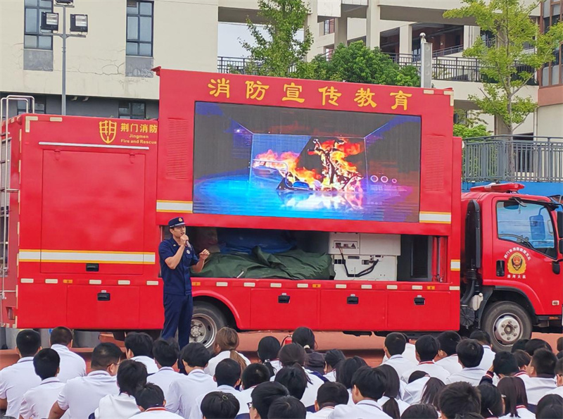 紧接着,荆门市漳河消防救援大队丹桂路消防救援站杨班长在运动场为全校师生阐述了灭火器的正确使用方法,并详细讲解了“一提、二拔、三握、四压”的操作步骤,进一步加深师生们对消防器材的认识和掌握。